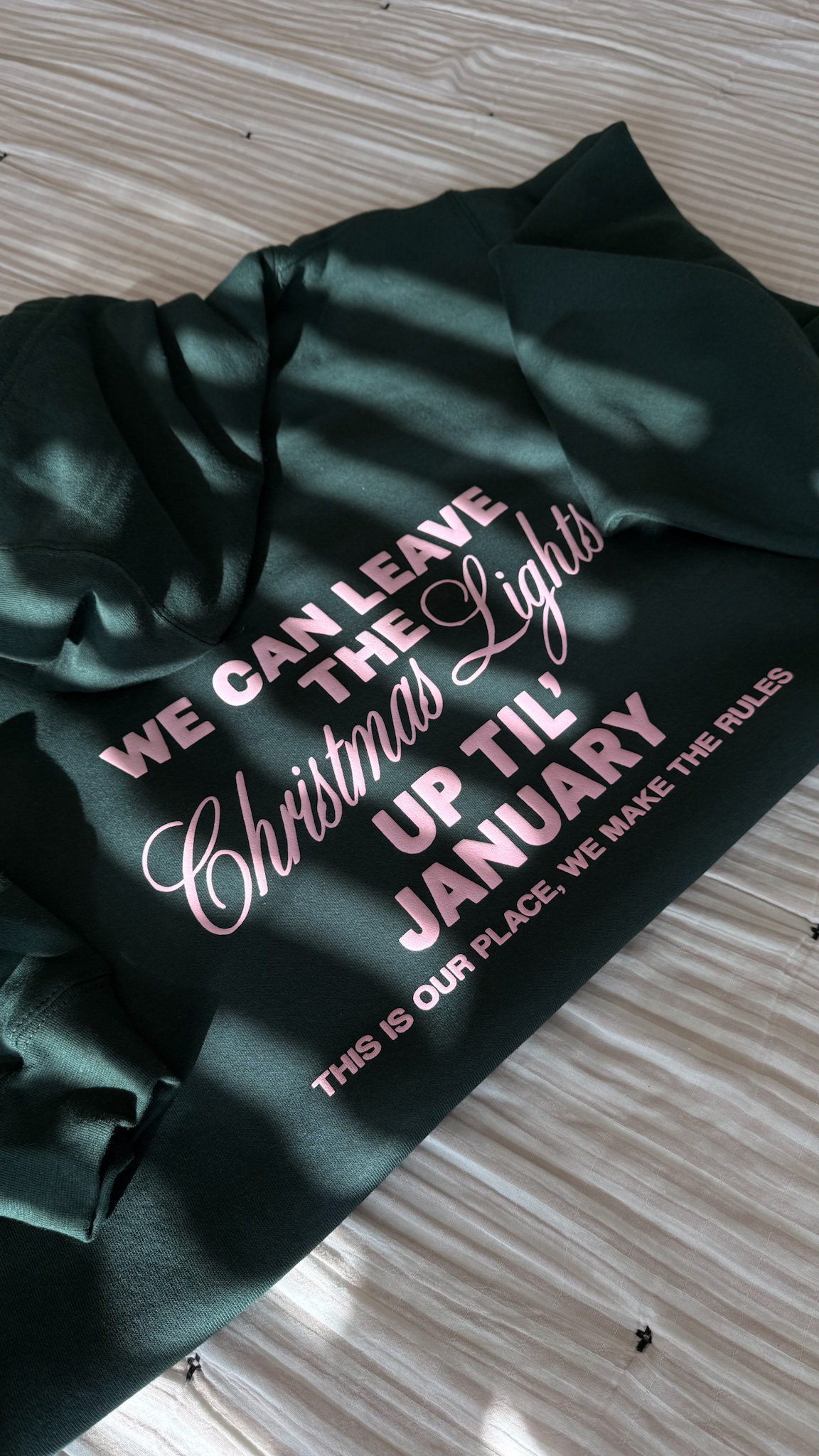 We Can Leave The Christmas Lights $45.00 Lane Seven Hoodie in Sport Green 80% Cotton 20% Polyester, 100% Cotton Face I am showing an XL Size Choose an optionSMLXL2XL3XLClear We Can Leave The Christmas Lights quantity Add to cart ← PREVIOUSNEXT → Related products Select options This product has multiple variants. The options may be chosen on the product page BWTGS, ChristmasNaughty Vibes $35.00 – $39.00Price range: $35.00 through $39.00 Select options This product has multiple variants. The options may be chosen on the product page BWTGS, ChristmasPink Peace Santa $30.00 – $55.00Price range: $30.00 through $55.00 Select options This product has multiple variants. The options may be chosen on the product page BWTGS, ChristmasBookish Ghostie Christmas $30.00 – $55.00Price range: $30.00 through $55.00